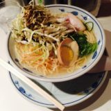 生姜が入った魚介とんこつラーメン 。普通のラーメンもありますが、生姜入りがオススメです。生姜のおかげでさっぱりかなり食べられます。
